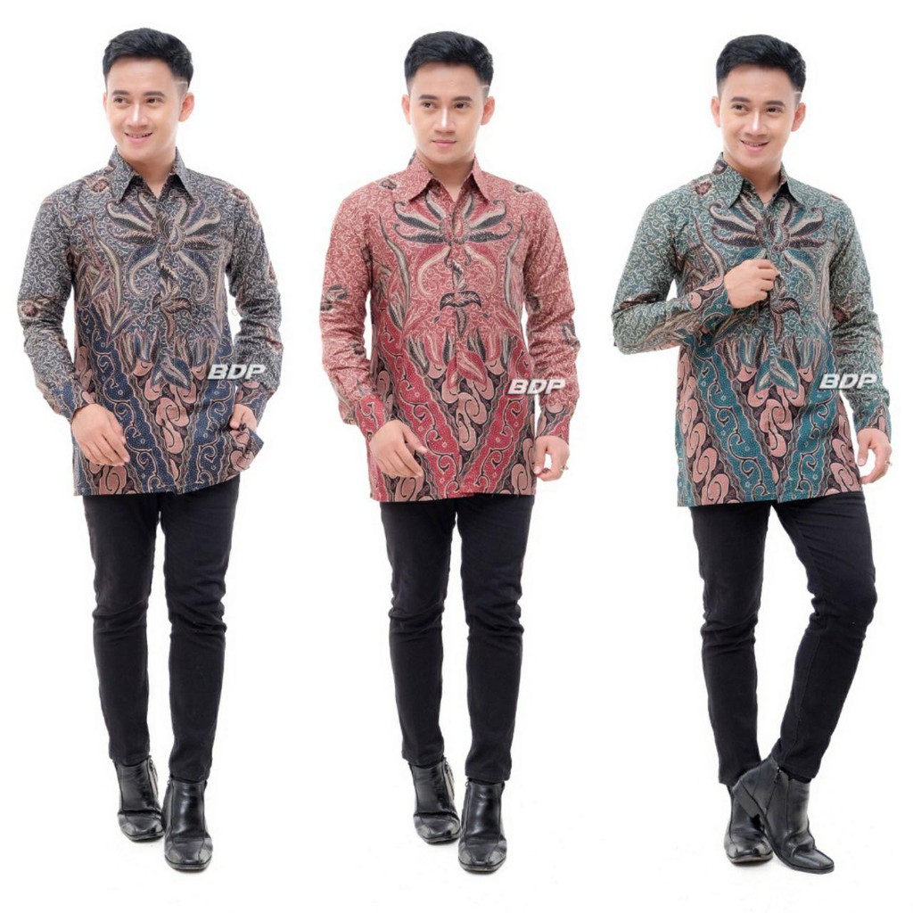 Kemeja Batik Pria Lengan Panjang Motif Parang Bunga Shopee Indonesia for Batik motif bunga pria
